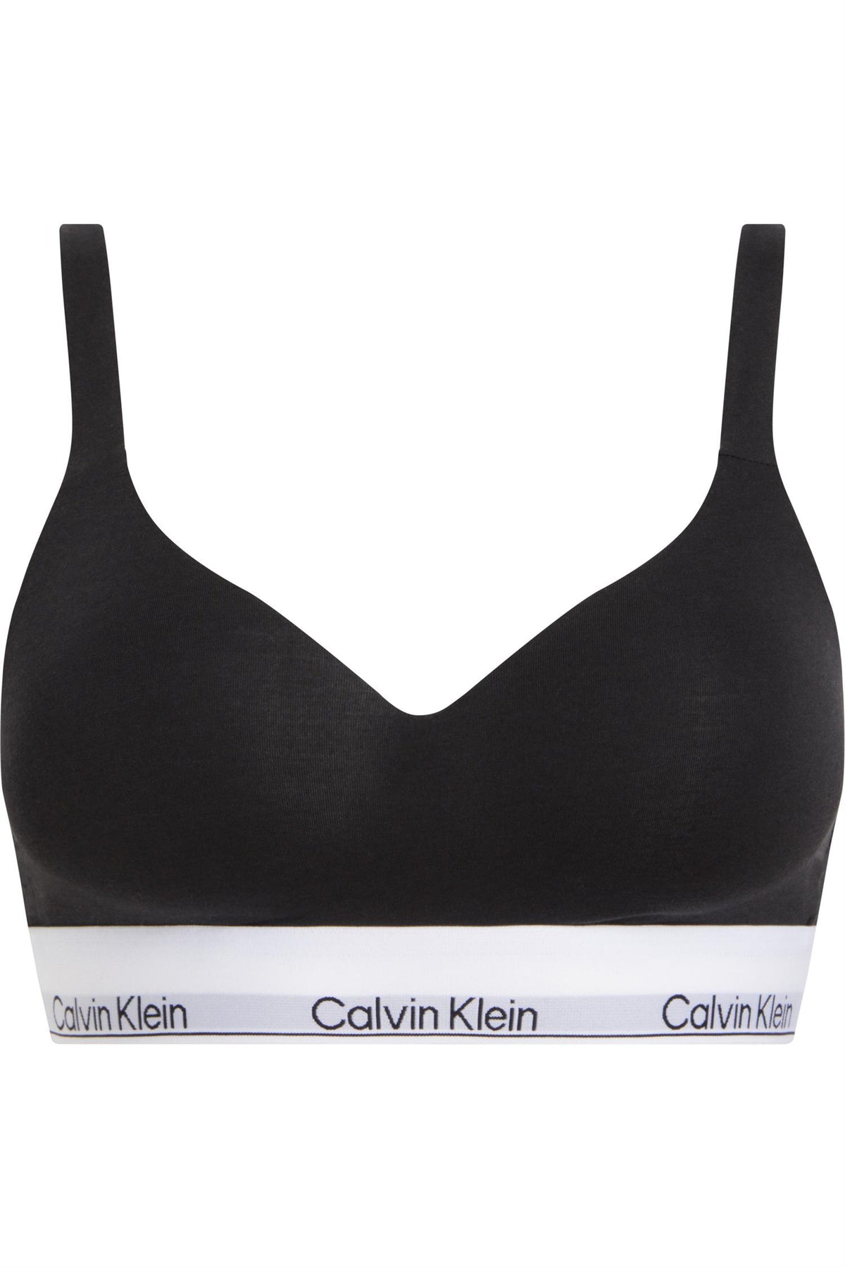 Calvin Klein Lift Bralette fra Modern Cotton-serien kombinerer pustende komfort og en sporty look, designet for deg som ønsker både stil og funksjon. Denne braletten er laget av en myk og fleksibel modal-bomullsblanding som gir deg en deilig følelse mot huden, samtidig som den er slitesterk. Braletten har myke, formstøpte kopper som er polstret for en subtil løfteeffekt, noe som gir en naturlig og flatterende form uten at det føles tungt eller ubehagelig. Det ikoniske elastiske underbåndet med Calvin Klein-signatur gir et sporty preg og støtter samtidig godt.