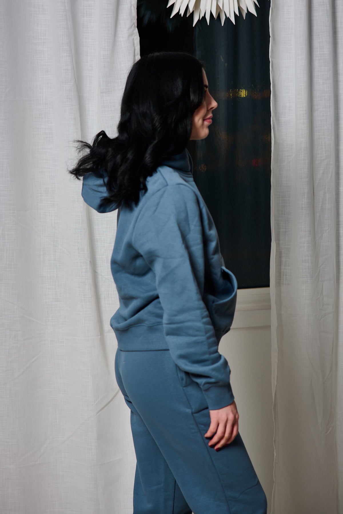 Det ideelle plagget for deg som ønsker både stil og komfort – tidløs, myk og allsidig. Hettegenseren har en klassisk passform med hette, kengurulomme foran og ribbestrikkede kanter som gir en behagelig og godt balansert silhuett. Den støvblå fargen (“Blue”) gir et rolig, men moderne uttrykk som fungerer like godt til hverdagsbruk som til avslapning hjemme. Logoen fra Holzweiler på brystet gir et rent men distinkt designelement.