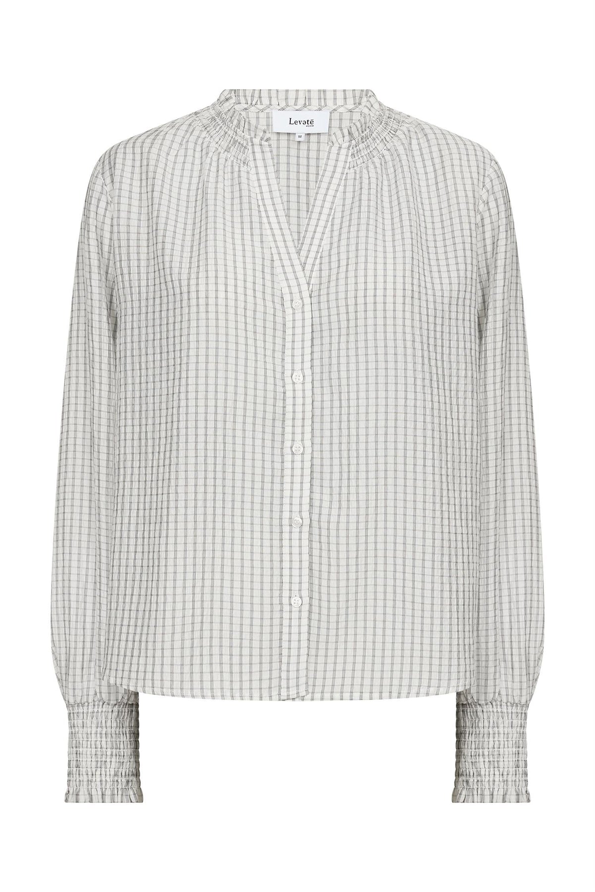Levete Room LR-PATTY 1 – Star White Combi er en elegant og feminin skjorte med delikat rutemønster og små, raffinert detaljer. Den myke kvaliteten i kombinasjon av Lyocell og Nylon gir et lett og behagelig plagg som passer både til hverdags og mer formelle anledninger.