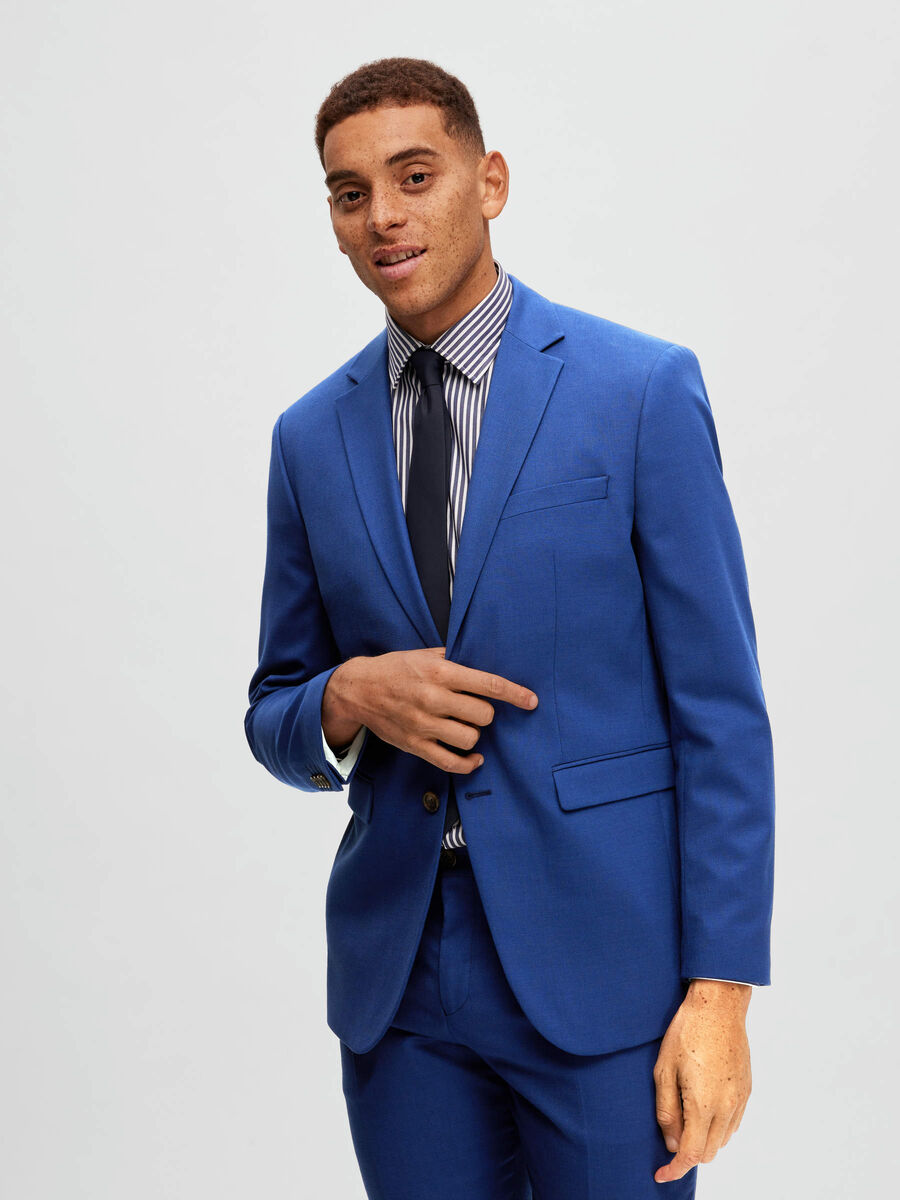 Ønsker du å gjøre et godt førsteintrykk? Enten det er i møterommet eller i baren etter jobb, vil denne blazeren få deg til å se best mulig ut. Den er skåret i et klassisk, enkeltspent design med innskårede jakkeslag og har en vevd finish. Billettlommen gir den et tidløst preg, mens stylens slim fit sørger for en moderne look. Prøv å style med vår matchende bukse, og legg til en mønstret skjorte og et par brogue-sko i skinn som en siste finish.