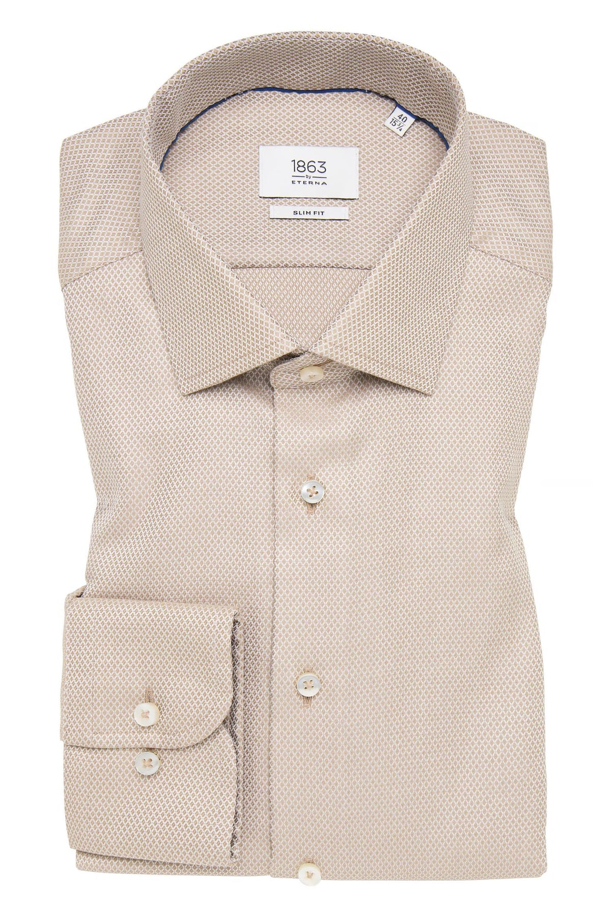 Denne eksklusive herreskjorten fra 1863 by ETERNA utmerker seg med førsteklasses kvalitet og håndverk. Skjorten er laget i 100 % bomull med dobby-struktur, som gir en behagelig og lett teksturert følelse mot huden. Den er NON IRON, noe som gjør den svært lettstelt og holder seg glatt uten stryking.