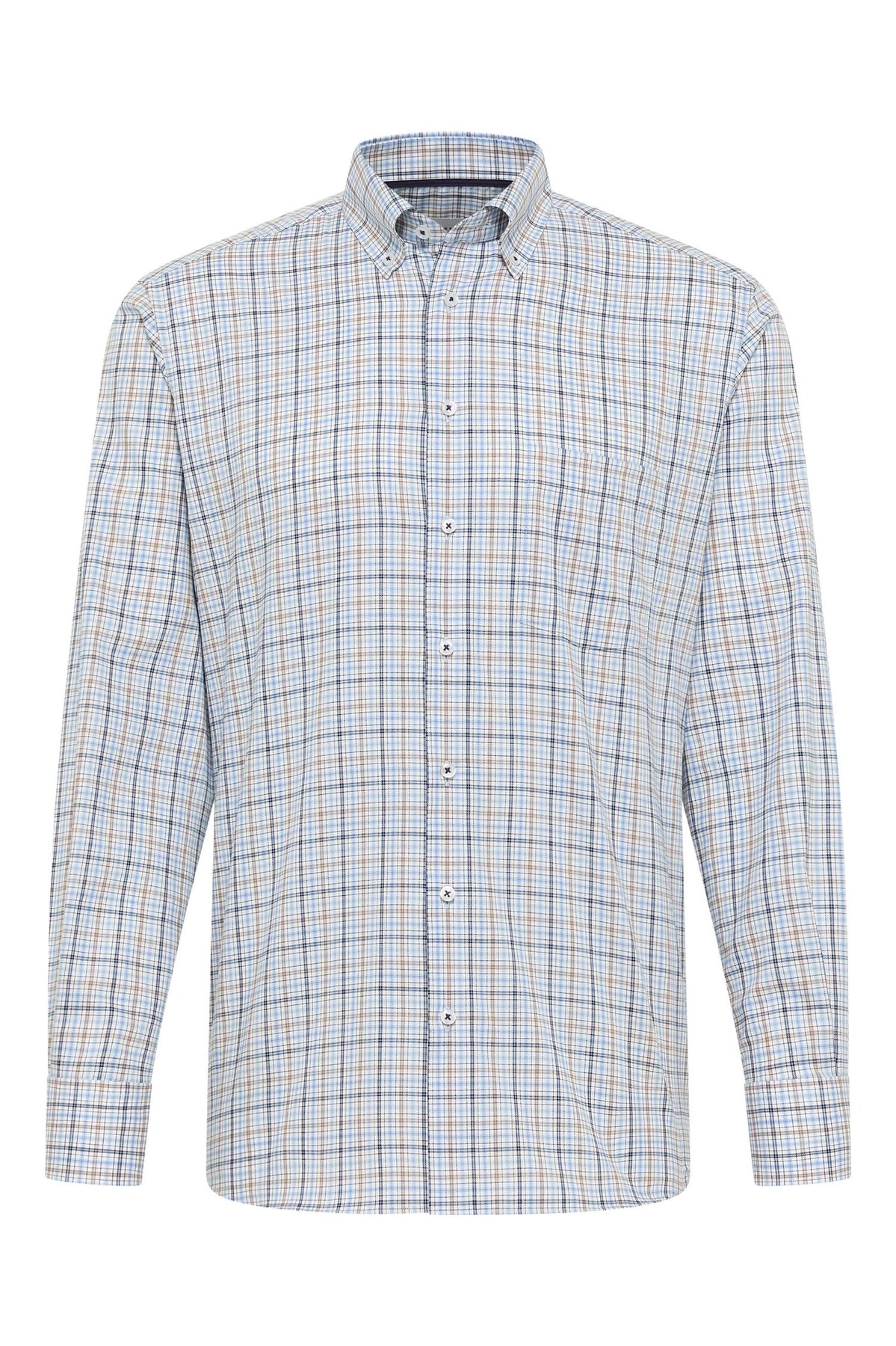 ETERNA Modern Fit Shirt – Blue Checkered er skjorten for deg som ønsker et tidløst og profesjonelt plagg med et klassisk rutemønster – elegant, komfortabel og lettstelt. Den har en knappelukking og en slank innsvinget «Modern Fit»-silhuett som gir et skarpt uttrykk hele dagen. Skjorten er laget i 100 % bomull av twill‑kvalitet som kombinerer høy slitestyrke med god pusteevne og komfort.