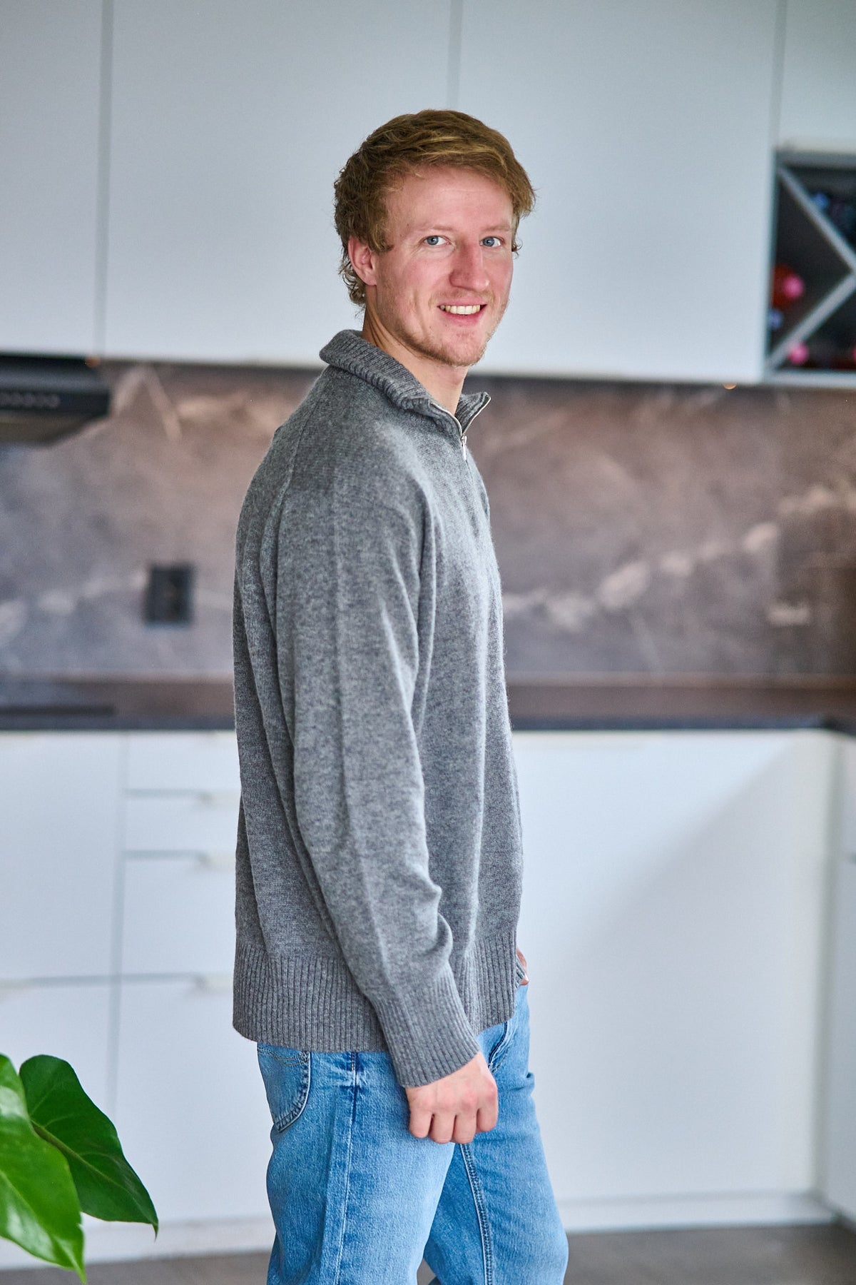Calle Relaxed Cashmere Blend Half Zip - Medium Grey Melange