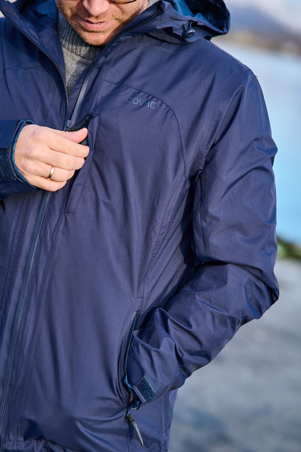 Forbered deg på å erobre naturen med stil og funksjonalitet med Outdoor Jacket fra Dovre. Denne marineblå jakken er designet for menn som elsker eventyr og aktive dager utendørs, enten det er på fjellet, i skogen eller i snødekte landskap.