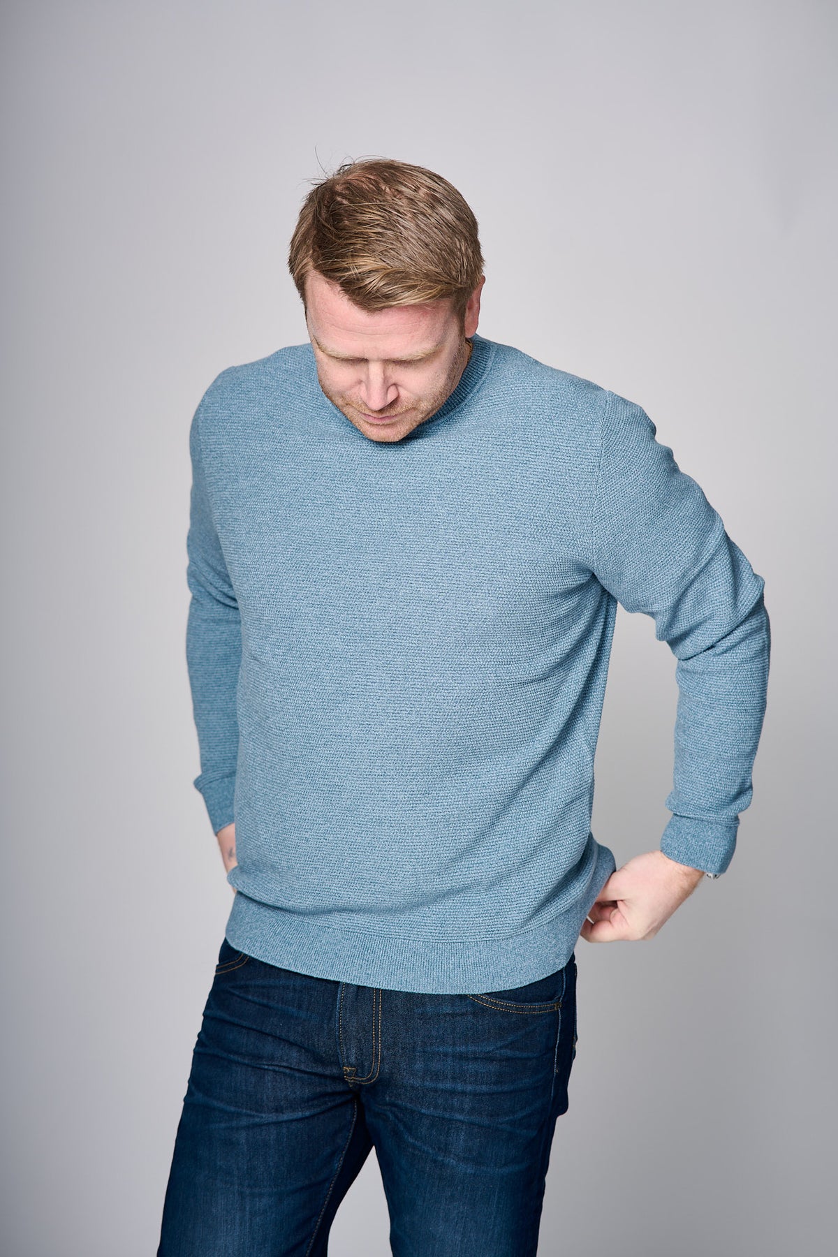 Genser med rund hals fra Selected Homme. Lange armer, ribbestrikkede kanter. Perfekt til lag-på lag eller bare alene.