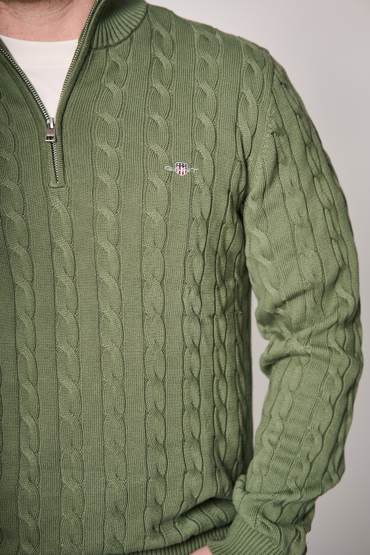 Gant Cotton Cable Half Zip er en klassisk og komfortabel genser laget i myk bomull med kabelstrikk som gir tekstur og et tidløst uttrykk. Half zip-designet tilfører et moderne preg og gjør det enkelt å justere stilen – lukket for et klassisk uttrykk eller halvåpen for en mer avslappet look.