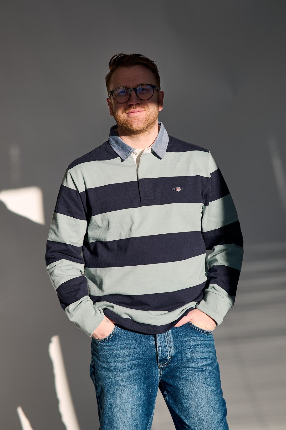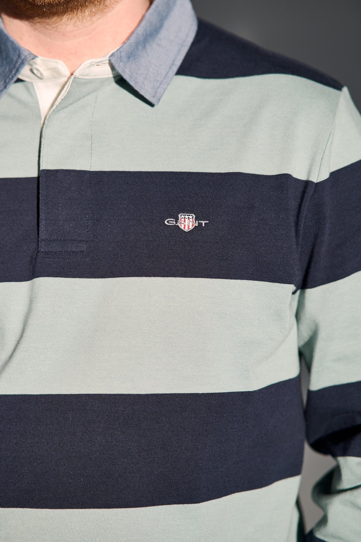Casual og tidløs rugby-inspirert genser fra GANT i Ceramic Grey med stripemønster og klassisk chambray-krage. Chambray Stripe Heavy Rugger er laget i 100 % bomull med regular passform, har en liten GANT-logo brodert på brystet og en klassisk knappelukking i halsen – perfekt som et allsidig, preppy basplagg i garderoben.