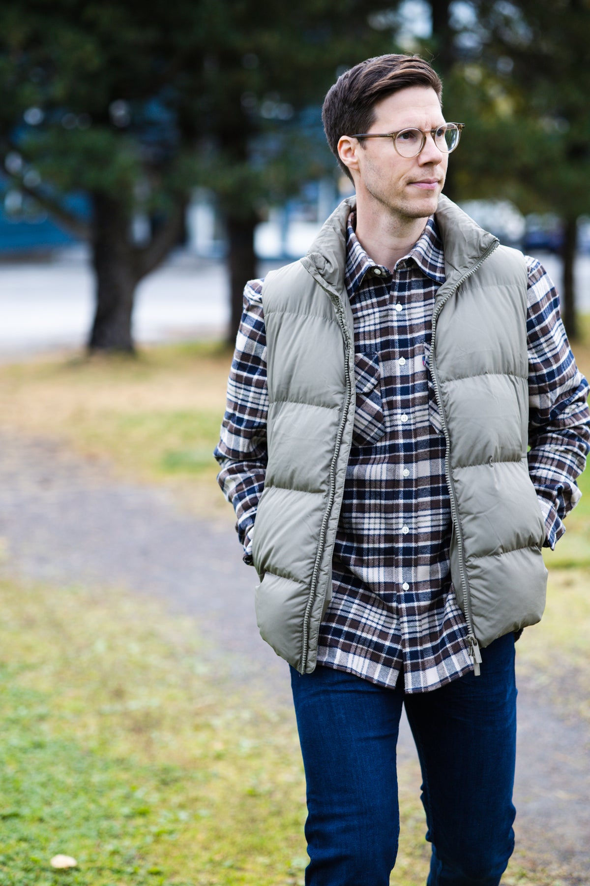 Denne sesongen har vi fokus på oppgradert yttertøy som vil bli din favoritt til høstens lag-på-lag-looks. Vår nye, polstrede vest er laget med fokus på kvalitet og lang levetid, og den har resirkulert Re:Down®-polstring for varme og en vannavvisende overflate som tar deg gjennom all slags vær. Den er også laget av et stoff, som er designet av eksperter fra italienske tekstilmøller, som kombinerer luksus med overlegen funksjonalitet i et plagg du vil bruke år etter år. Hvordan styler du den? Gå for en klassisk look, og style med flanell, jeans i mørk vask og en strikkelue i en matchende farge.