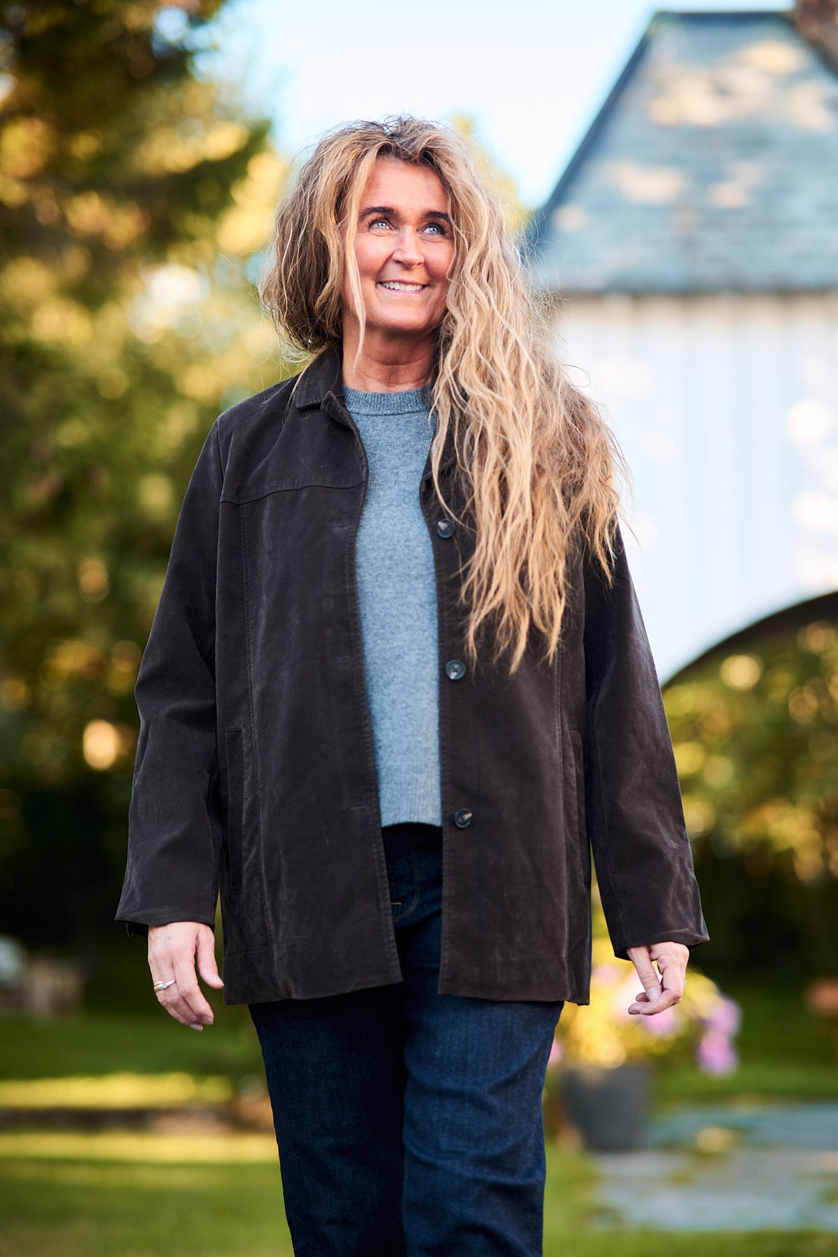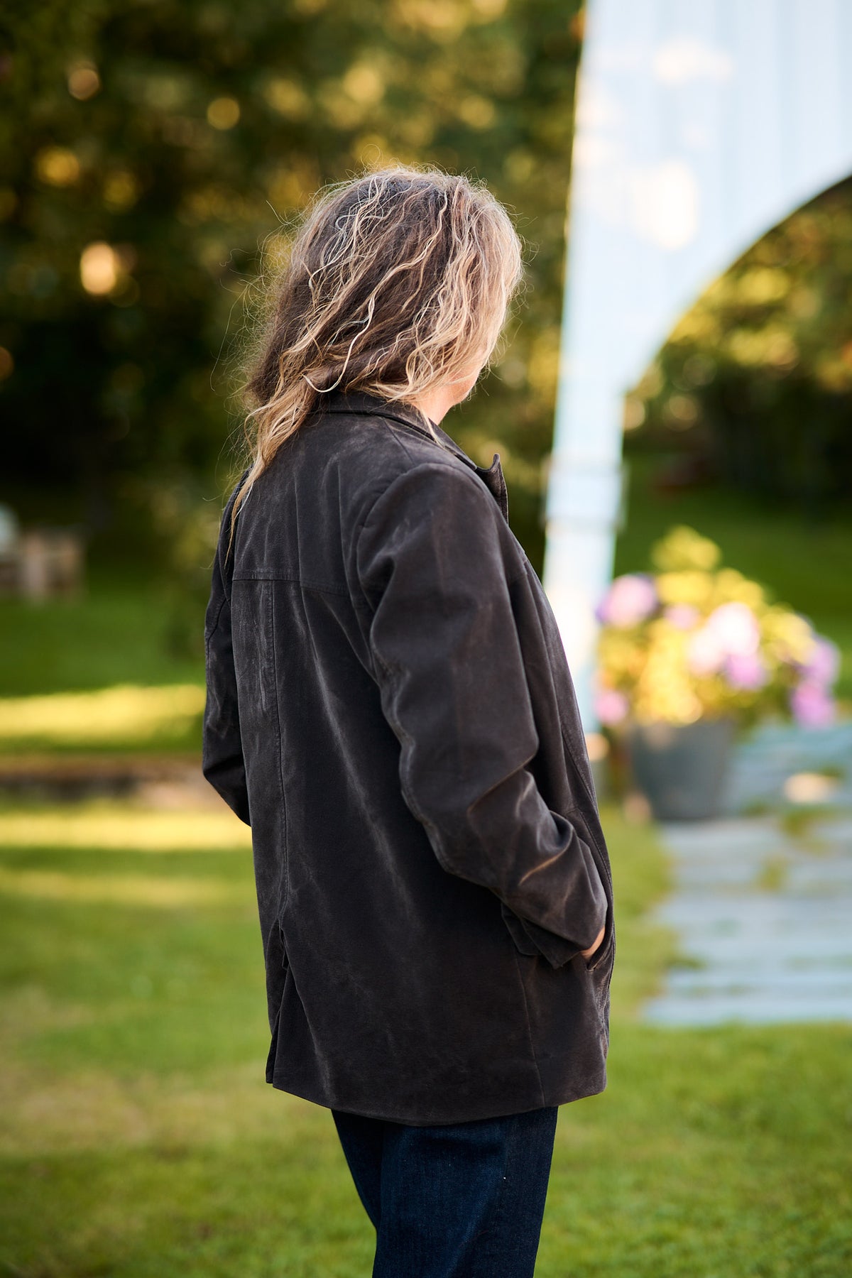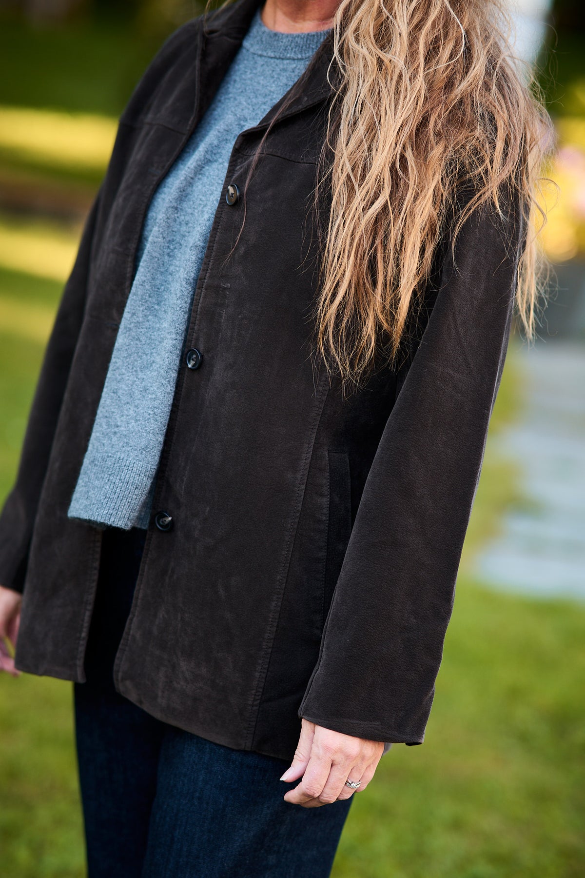 Nioba 3 – Brown er en tidløs skinnjakke i semsket skinn som kombinerer klassisk design med et moderne uttrykk.Den myke, brune semsken gir et eksklusivt preg, samtidig som den gjør jakken behagelig å bruke. Med sin allsidige passform og rene linjer er dette et plagg som enkelt kan styles til både hverdags og mer pyntede anledninger – perfekt over en kjole, eller sammen med jeans og boots for en avslappet, chic look.