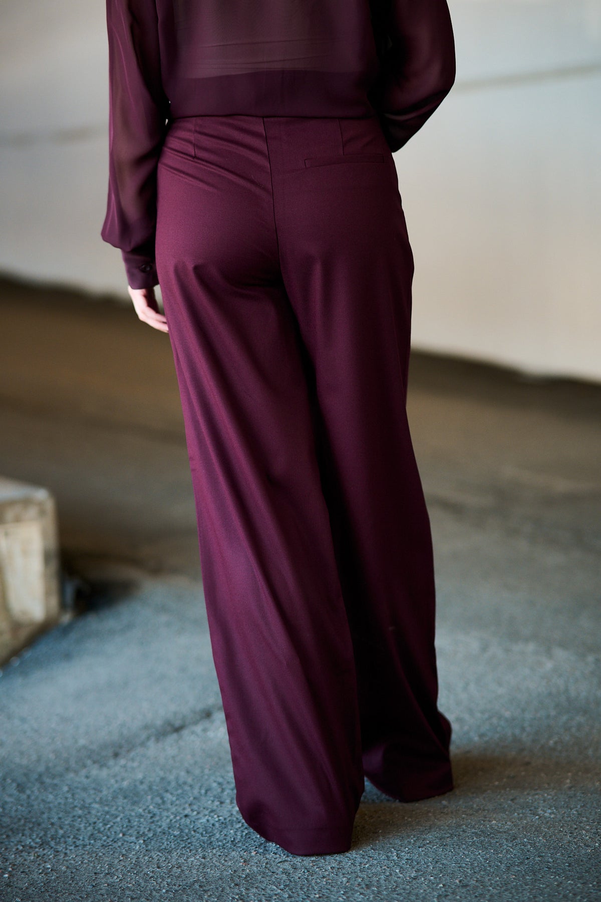 GZpaula MW Pants – Aronia er buksene som kombinerer tidløs eleganse med moderne snitt – et plagg du kan stole på til både jobb og fest. Det vide benet og den høye midjen gir en sofistikert silhuett, mens den dype rødbrune Aronia-fargen gjør buksene enkle å kombinere med resten av garderoben. Med sin løse passform og rene linjer får du et allsidig uttrykk som fungerer like godt i hverdagen som på kvelden.