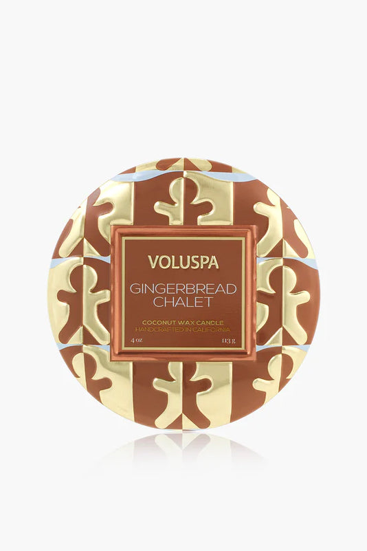 Voluspa Gingerbread Chalet Mini Tin Candle er et koselig og praktisk duftlys som bringer julens varme og krydderduft inn i hjemmet – kompakt, stemningsfull og lett å plassere. Duften kombinerer noter av krystallisert ingefær, kanelstang, knust nellik og tonkabønne for å skape en varm og nostalgisk aroma som minner om pepperkakebaking og vinterkos. Dette lille lyset gir deg den samme rike aromaen i en mer kompakt form.