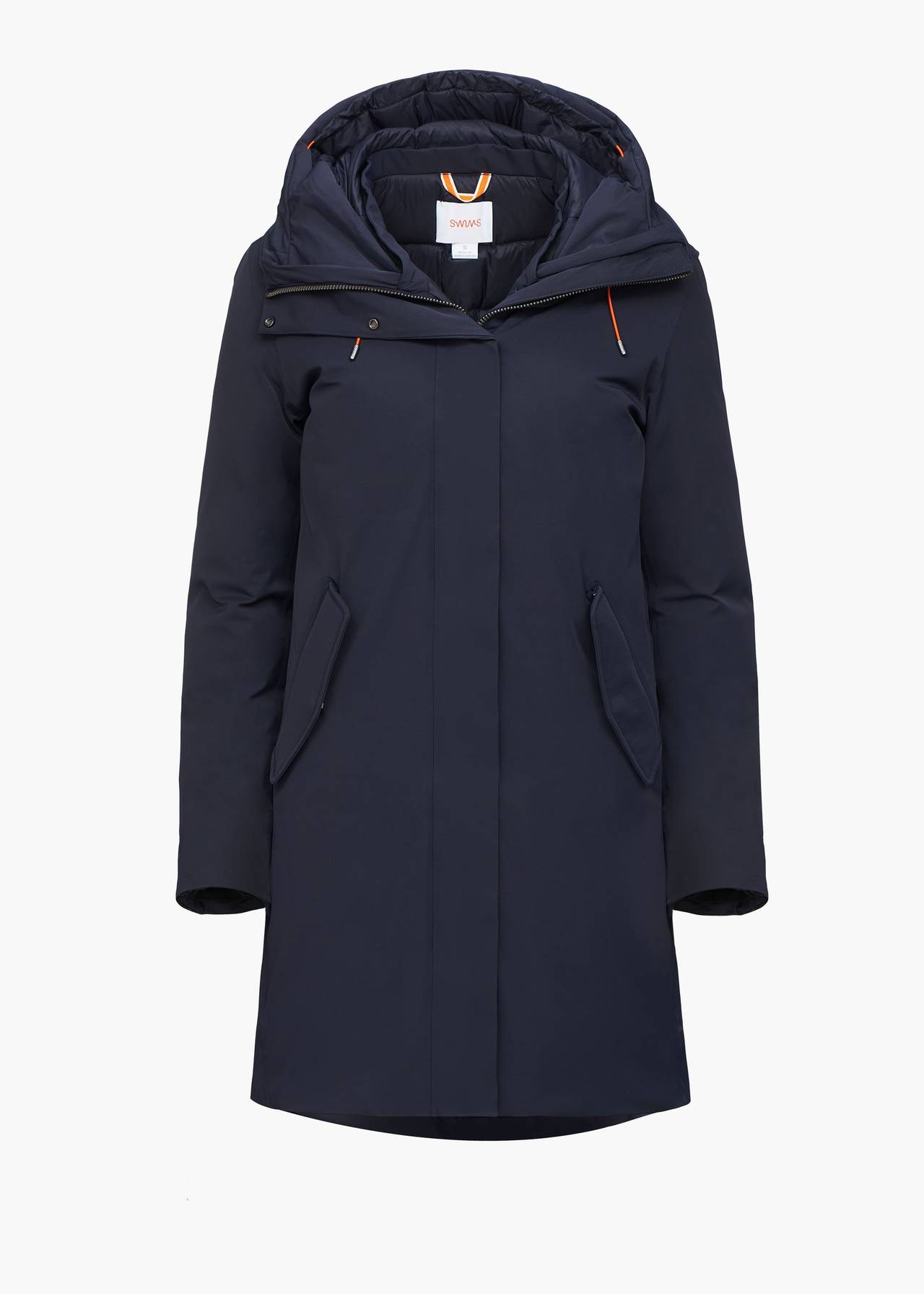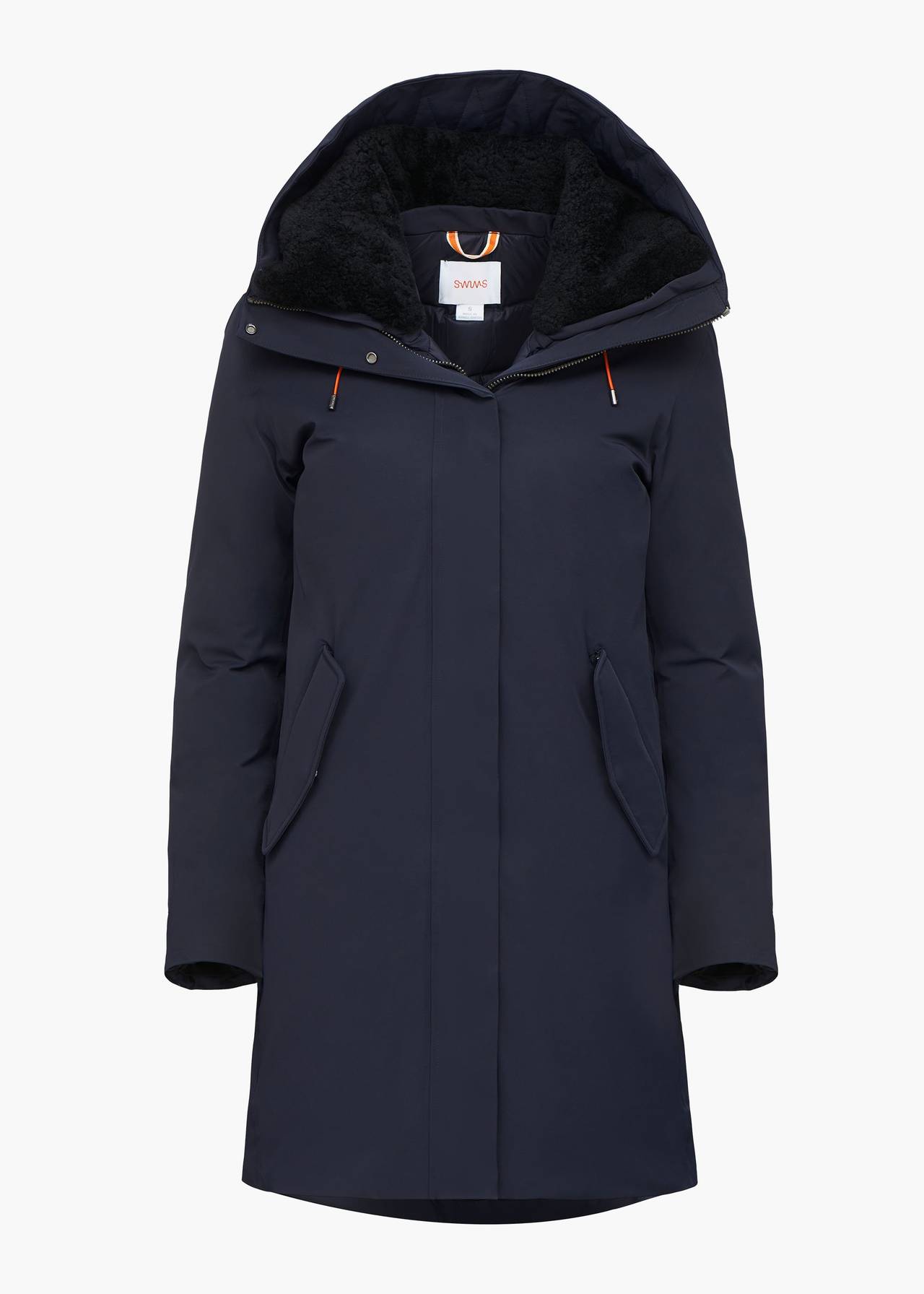 Bare fordi været ikke ser så bra ut, betyr det ikke at du ikke kan det. Denne koselige og behagelige dunfylte kåpen har en slank SWIMS-silhuett og avtakbare lam i kragen for ett slående yttertøy.