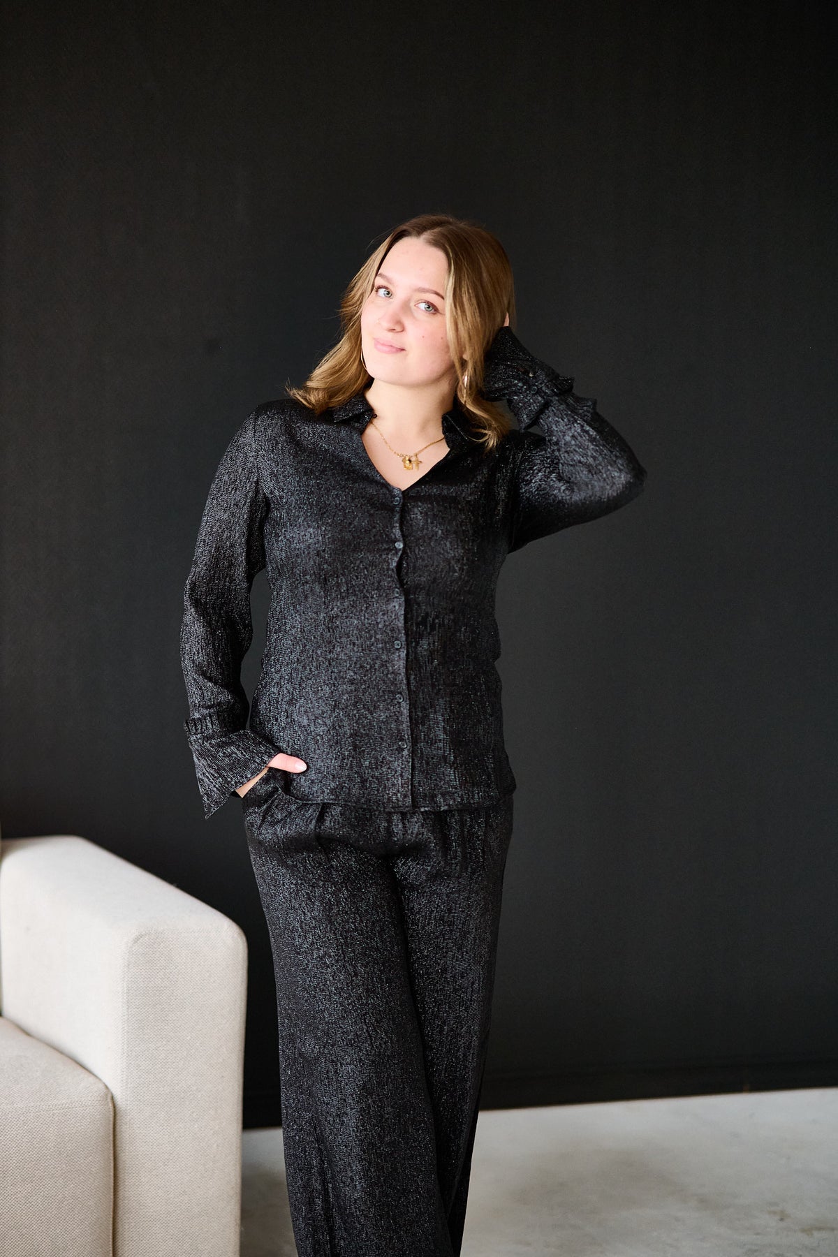 Levete Room Otis 3 – Black er den perfekte blusen for deg som ønsker en tidløs og anvendelig favoritt – elegant, komfortabel og stilren. Den klassiske kragen og den åpne halsen gir et sofistikert uttrykk, mens de lange ermene med flared cuffs tilfører et moderne preg. Den myke viskose- og polyesterblandingen sørger for behagelig komfort hele dagen. En allsidig bluse som kan styles med alt fra skreddersydde bukser til jeans – et plagg du vil bruke igjen og igjen.