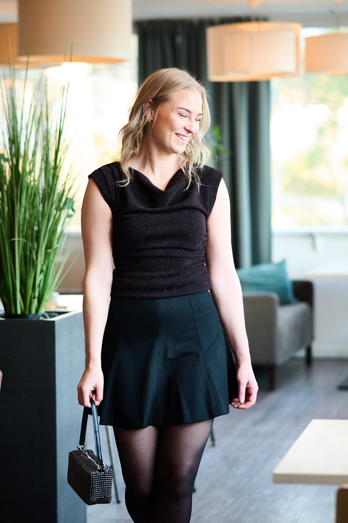 Levete Room Obassie 2 er et elegant skjørt som kombinerer klassisk design med moderne komfort – stilrent, feminint og anvendelig. Skjørtet er laget av en myk og lett blanding av polyester, viskose og elastan, og har et subtilt print som gir et sofistikert uttrykk. Passformen er flatterende og gjør det enkelt å style både til hverdags og kontor – bruk det med en pen bluse og flats for en tidløs og komfortabel look.