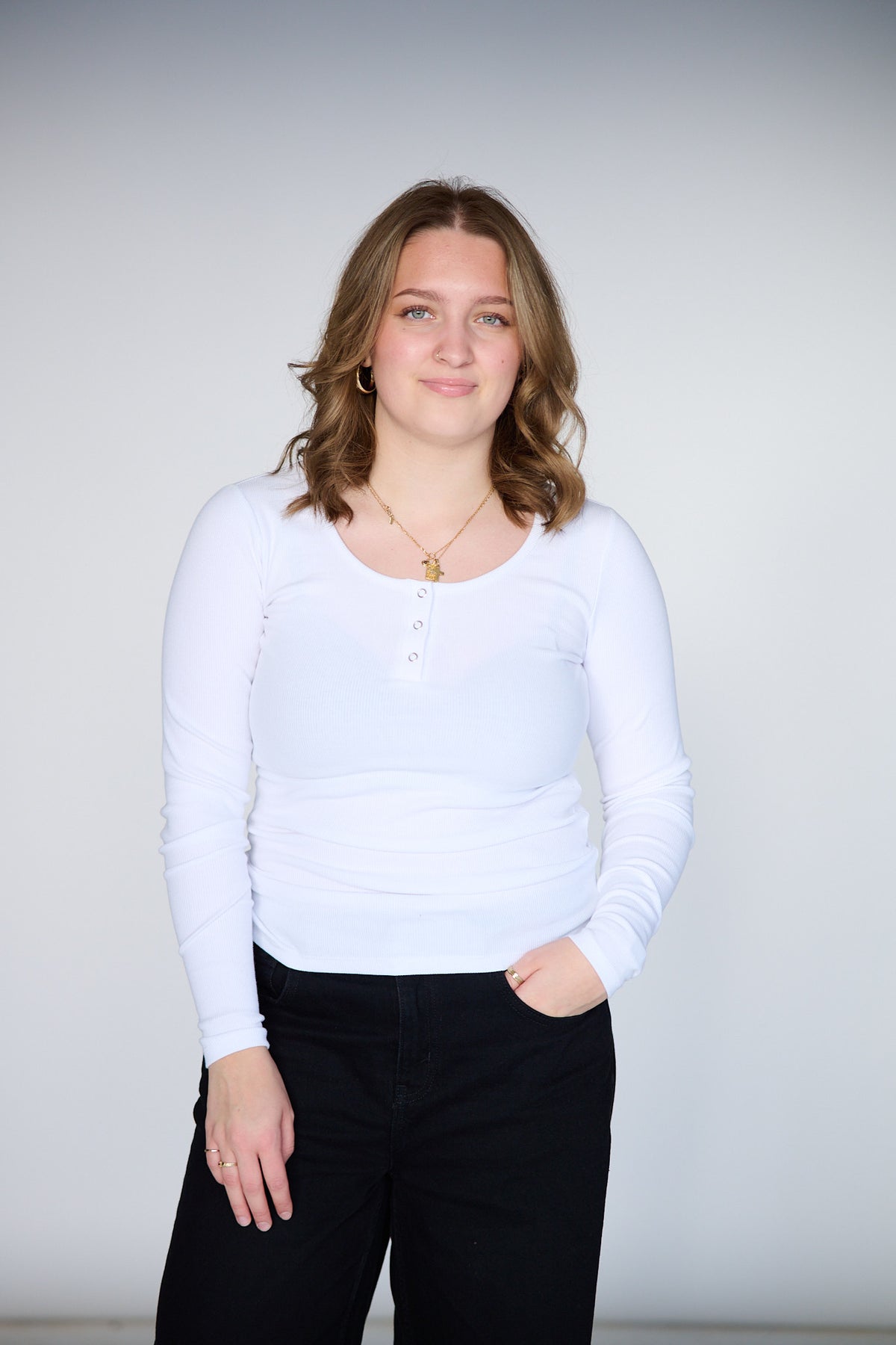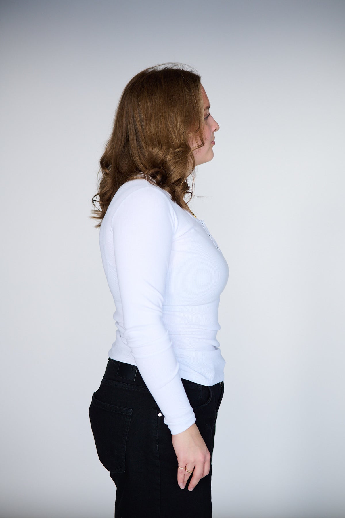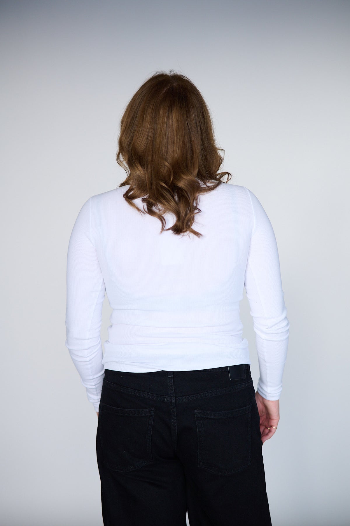 Langermet topp med knapper i front. Deilig ribbe-kvalitet. Logomerke i nakken.
