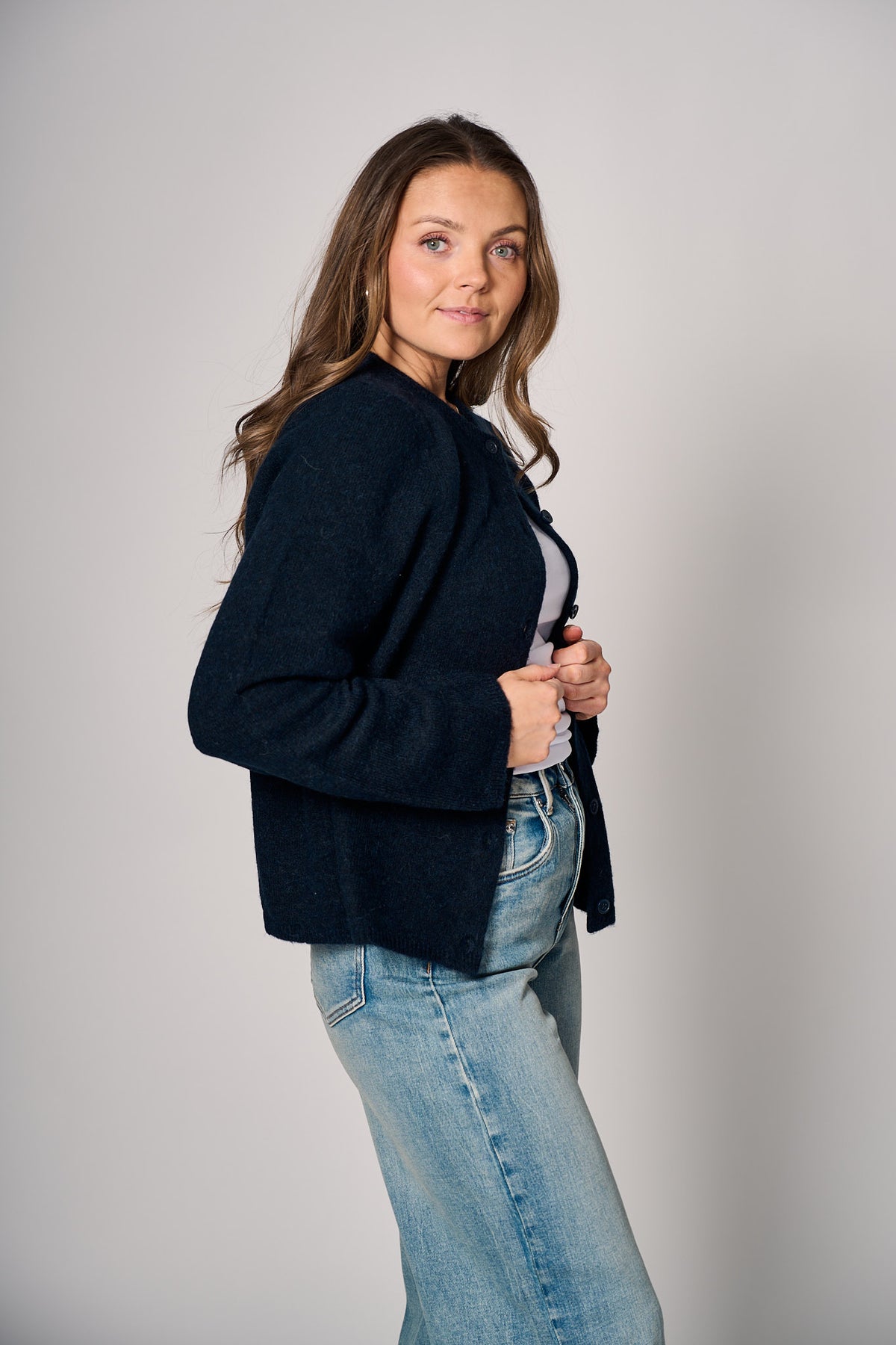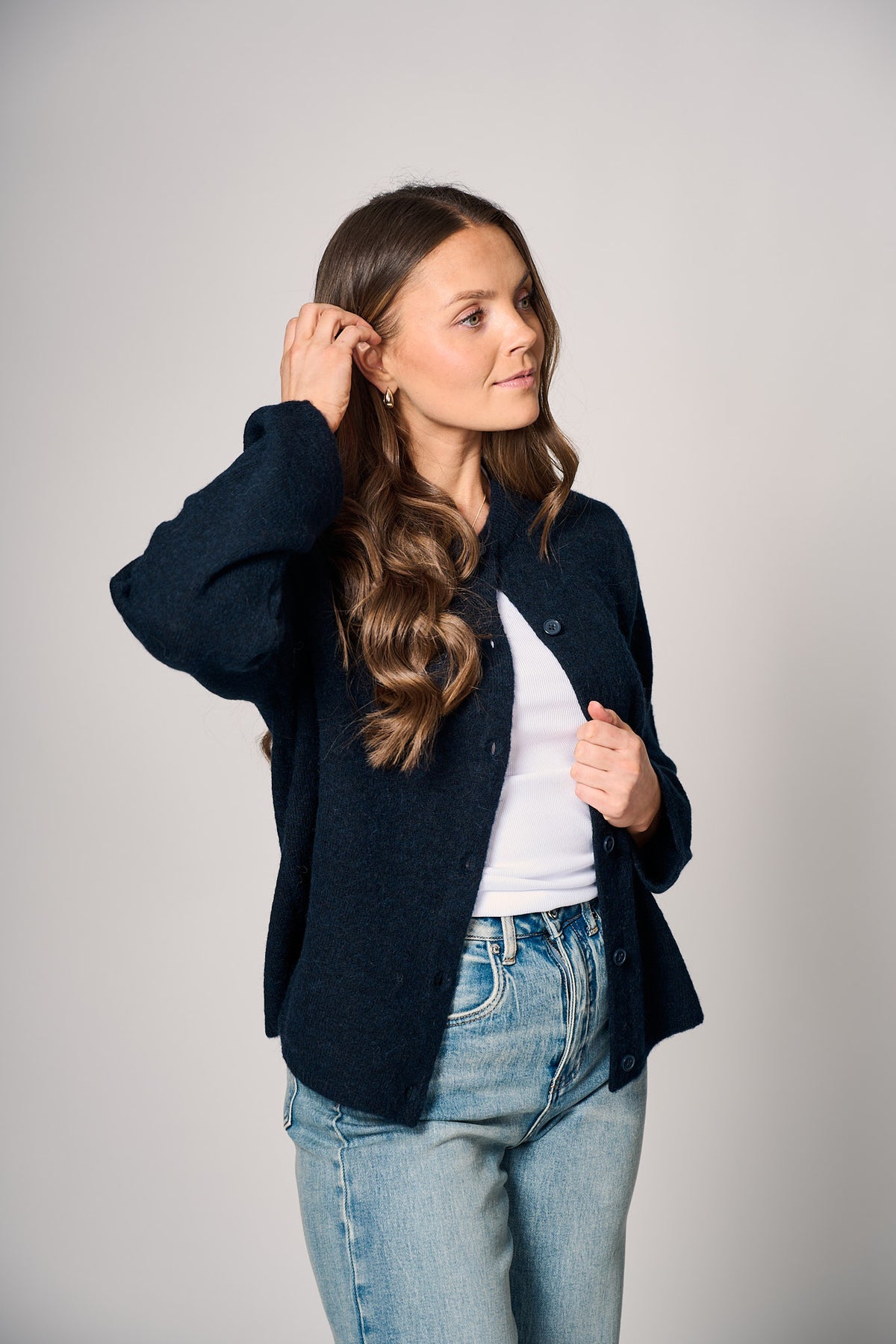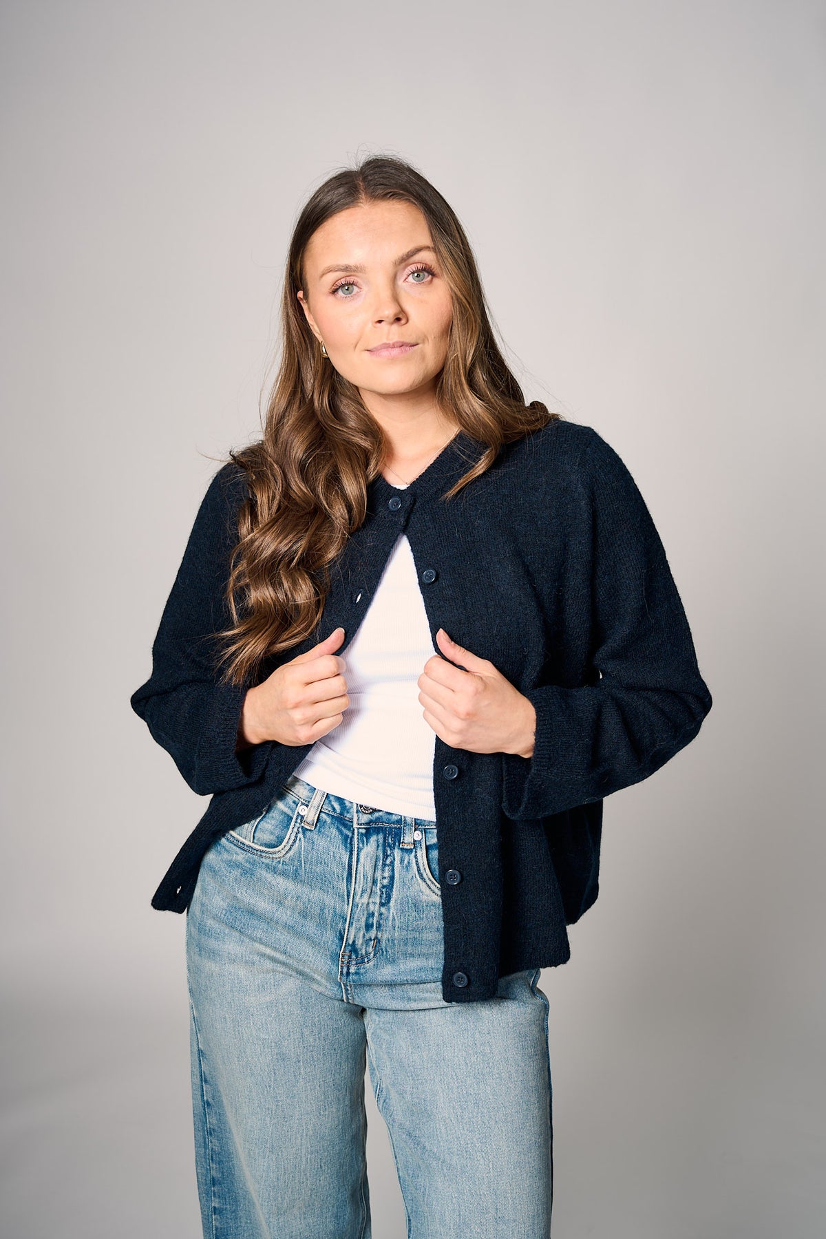 Selected Femme Lulu New LS Knit Cardigan NOOS – Dark Sapphire Melange er den perfekte cardiganen for deg som ønsker et varmt, mykt og tidløst lag-plagg – elegant, behagelig og anvendelig. Den klassiske designen med knappelukking i front, rund hals og ribbekanter gir et sofistikert uttrykk, mens den deilige blendingen i materiale gir deg varme og kvalitet.