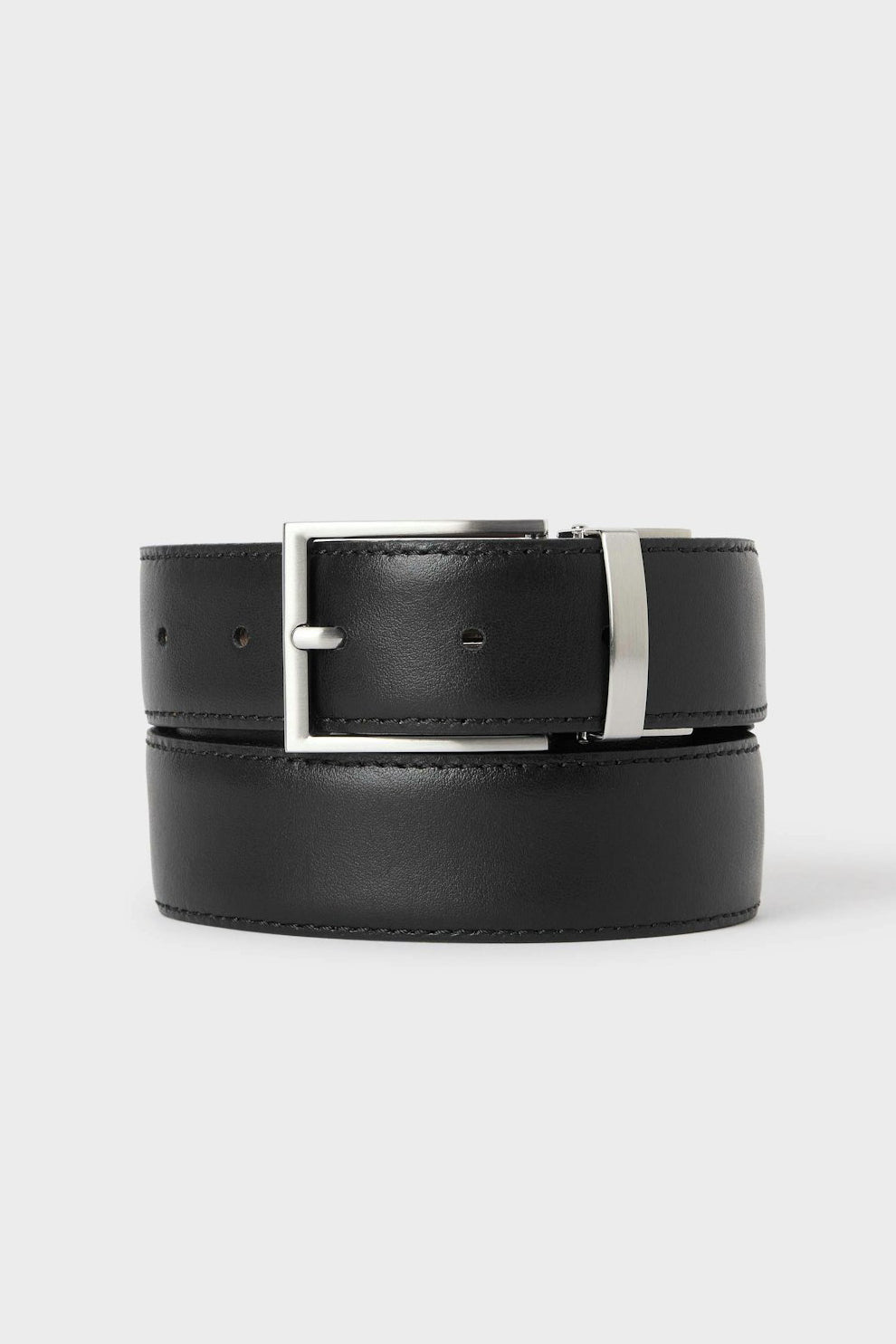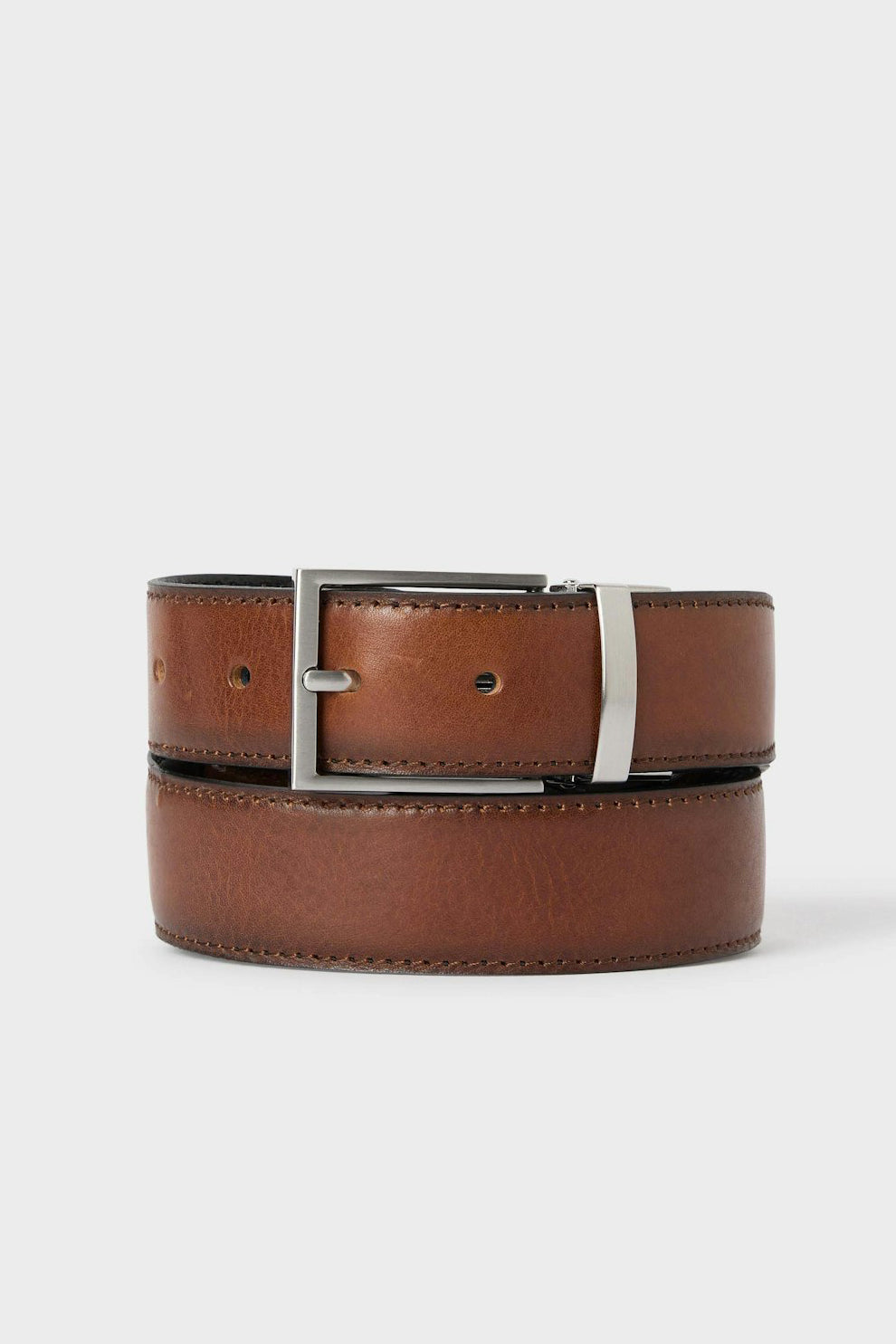 Valter er et vendbart belte i svart og brunt skinn – perfekt til både dress og hverdagsbruk. Det børstede sølvspennet gir et elegant preg. Beltet er laget av fullnarvet skinn på den brune siden og slitesterkt splittskinn på den svarte, med skinn fra et LWG-sertifisert garveri.