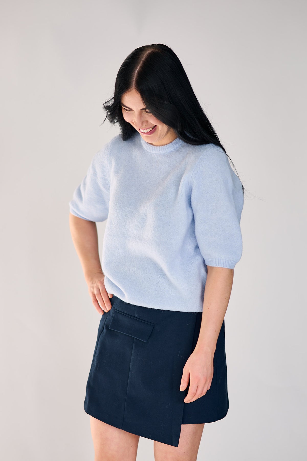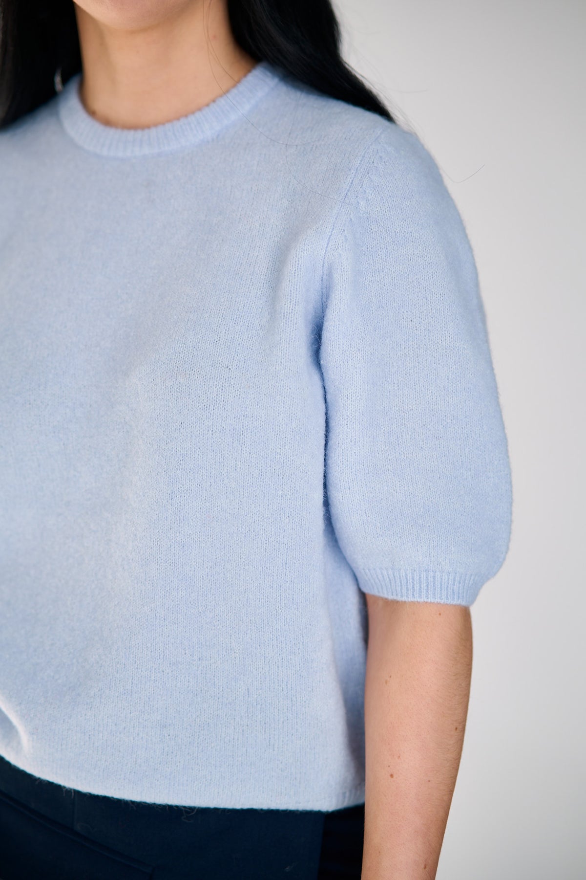 Den myke kvaliteten og det enkle designet gir et avslappet, men gjennomført uttrykk – perfekt til jeans, dressbukser eller skjørt. En essensiell hverdagsfavoritt med moderne edge.