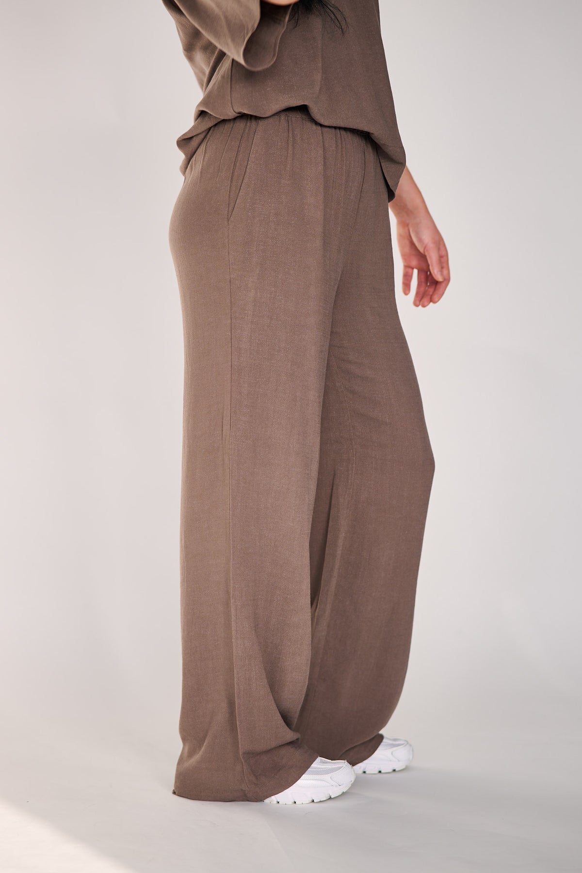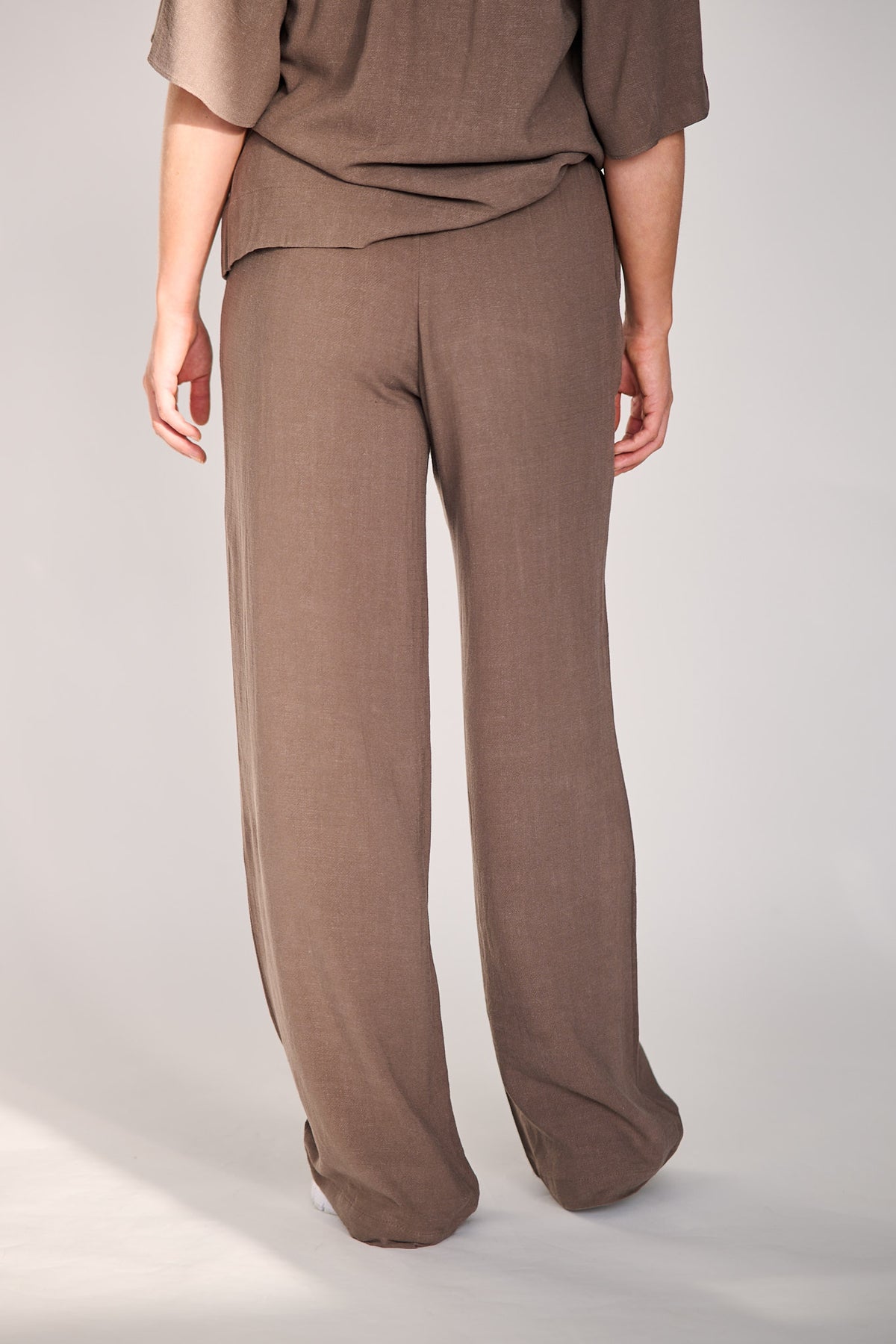 Lett og elegant bukse i en varm Chocolate Chip-nyanse. Viva-Gulia HW Long Sun Pant har høy midje og lange, vide ben som gir en flatterende og sofistikert silhuett. Den luftige kvaliteten gjør den perfekt for solrike dager, samtidig som uttrykket er stilrent og anvendelig.