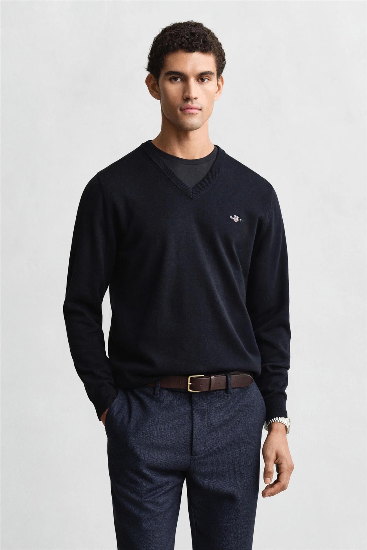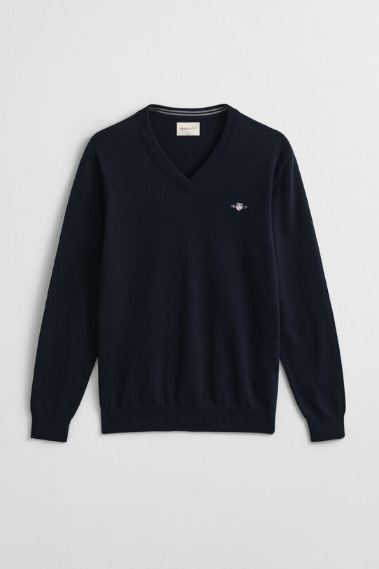 Den klassiske V-halsen fra Gant. Passer til alt. Kle den opp med en skjorte under, eller ha den for seg selv.