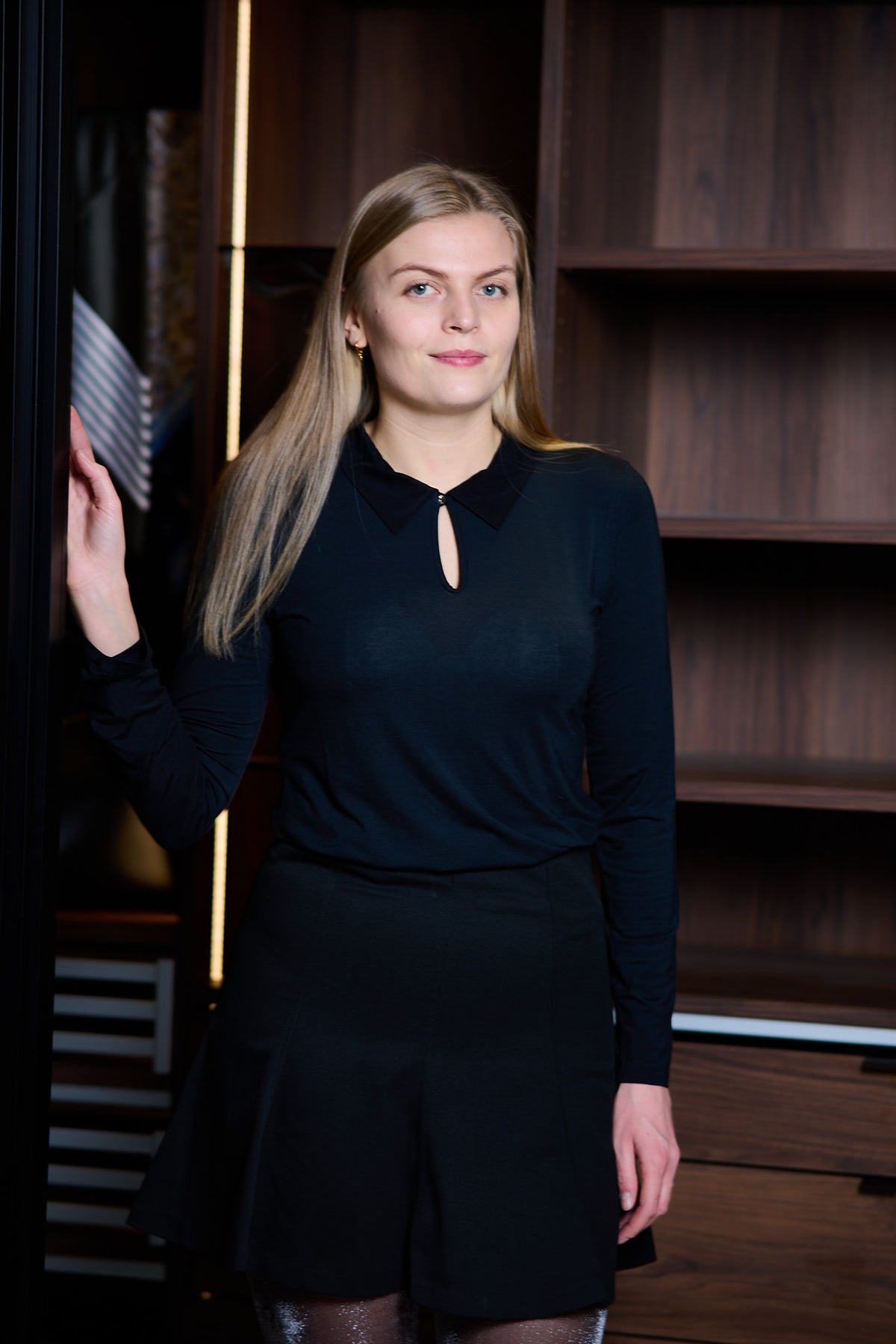 Oroblu Perfect Line T-shirt LS w/Tulle Collar – Black