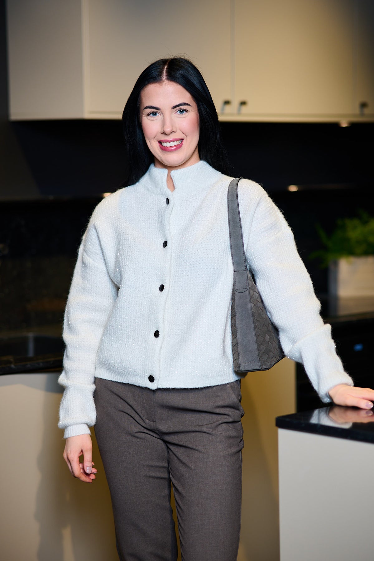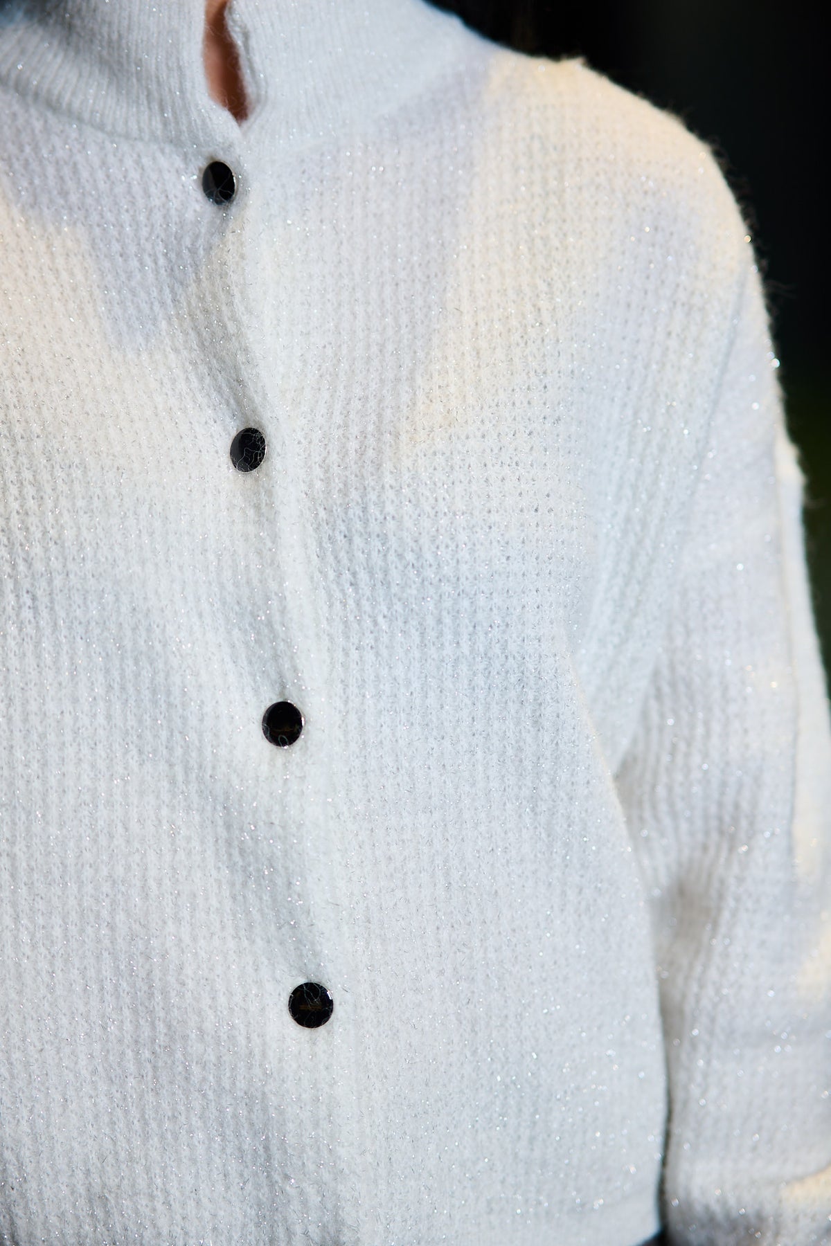 Gestuz Alpha Shimmer Cardigan – Ivory with Lurex er den perfekte cardiganen for deg som ønsker en tidløs og anvendelig favoritt – elegant, komfortabel og stilren. Den myke ull- og alpakka-blandingen gir en luksuriøs følelse, mens den subtile lurex-tråden tilfører et diskret, glitrende preg. Den avslappede passformen og den høye halsen gir et sofistikert uttrykk, mens de svarte knappene og den lette strukturen tilfører et moderne touch. En allsidig cardigan som kan styles med alt fra jeans og skjørt til over en kjole – et plagg du vil bruke igjen og igjen.