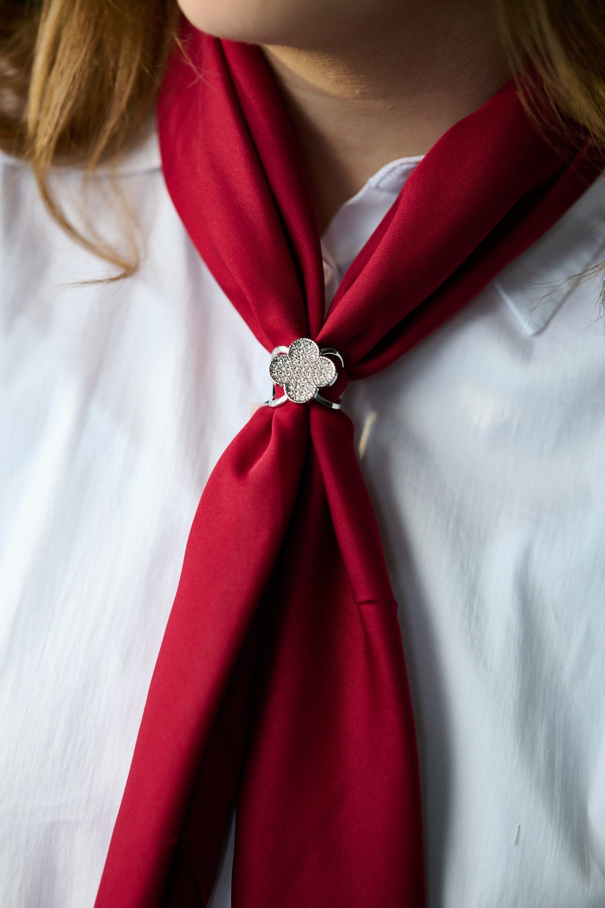 Intex Skjerfring Firkløver – Sølv er et lekkert tilbehør som gir antrekket ditt et subtilt og elegant preg. Ringen har et karakteristisk firkløver-motiv i en stilren sølvfarget finish, og passer perfekt til skjerf, sjal eller tynne ponchoer. Den gir både et personlig og dekorativt preg, samtidig som den holder skjerfet på plass.