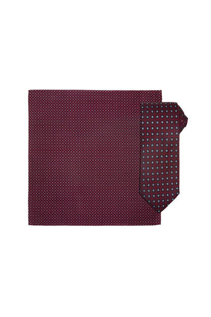 Silkeslips + Lommetørkle - Mønstret Vinrød